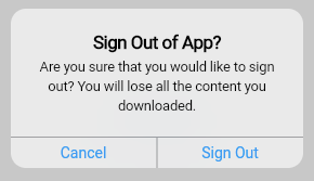 An example of when you might see an alert dialog is when you tap the sign-out button on an app. Usually, there’s a pop-up message with text such as “Are you sure you want to sign out?” and two buttons: Cancel and Sign Out. This alert dialog ensures that the user understands what’s about to happen and the user can acknowledge that they truly want to proceed.