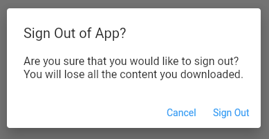 content: const Text('Are you sure that you would like to sign out? You will lose all the content you downloaded.'),